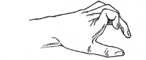 図解1 関節をまげゆびを高く上げるのは古いタッチ